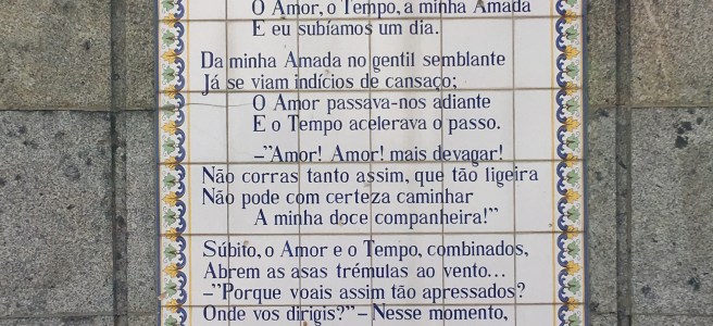 We beklommen met ons vieren op een dag een hoge berg. Allemaal gezelschapsdieren, de Liefde, de Tijd, mijn Lief en ik.
